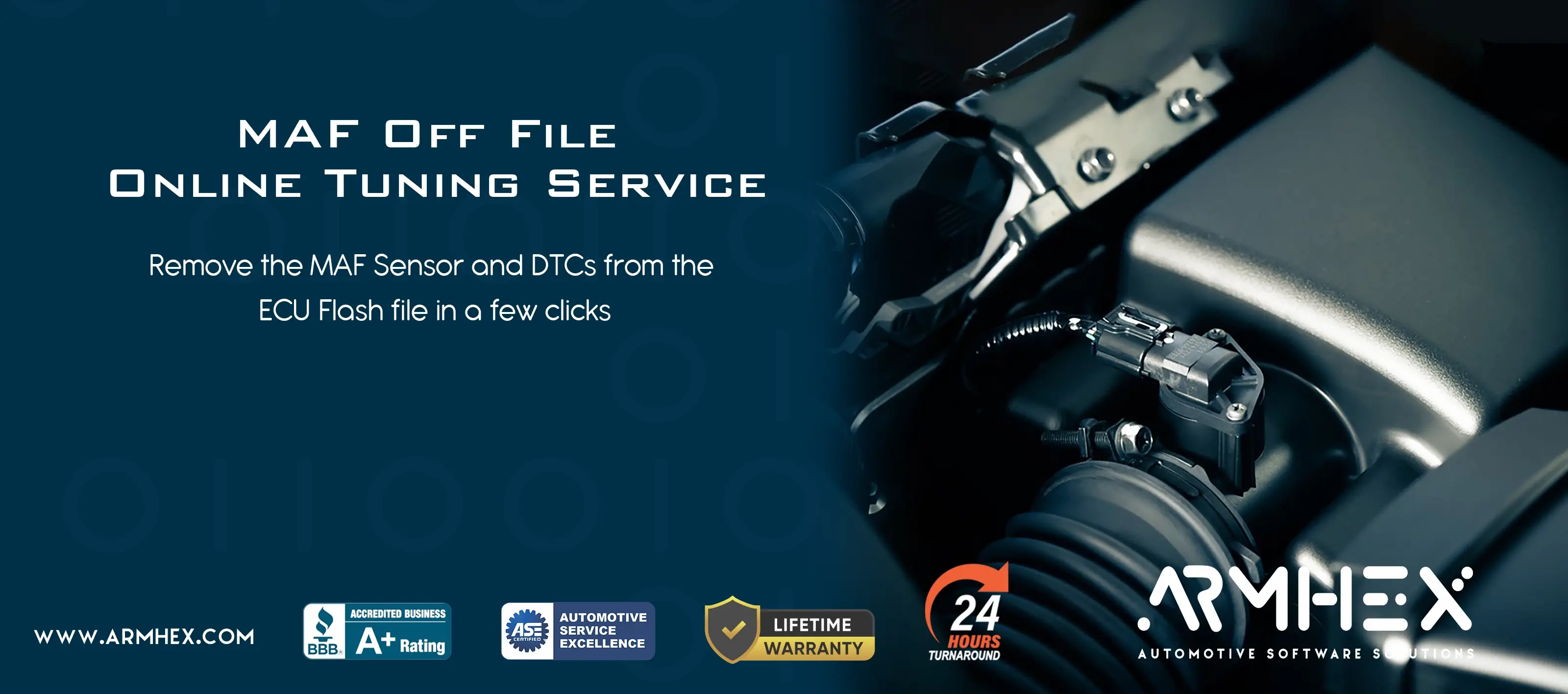 The ARMHEX MAF Delete, MAF Off, or MAF Remover online service is designed and tailored to help you delete and disable MAF-related maps and DTCs from the ECU software (dump).