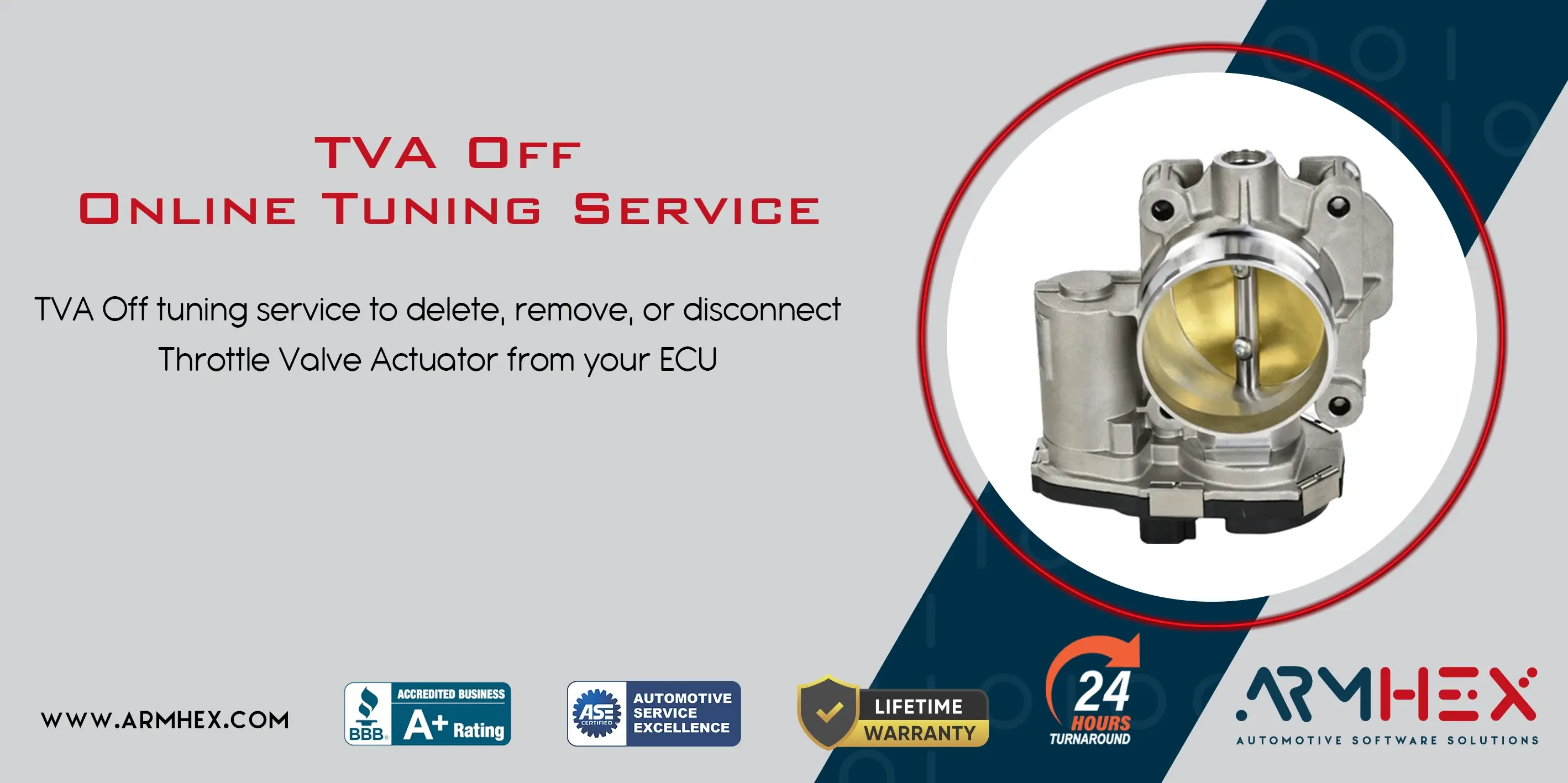 TVA Off, removal, or deletion refers to the tuning and remapping process in which the tuner deletes and disables the Throttle Valve Actuator (TVA) maps, system, and functionality from the vehicle’s Engine Control Unit (ECU) flash, map, or software.